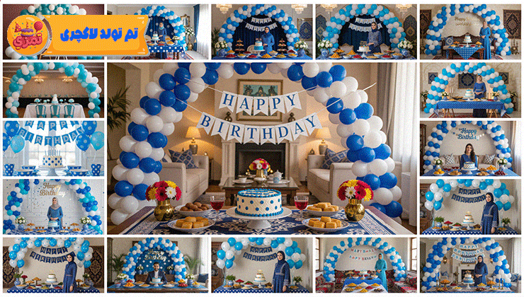 اگر به دنبال یک تم تولد لاکچری مردانه با رنگی کلاسیک و آرامشبخش هستید، تم تولد لاکچری خالدار آبی (با تناژ سرمهای یا آبی نفتی) از تمزی گزینهای ایدهآل است. این تم با ترکیب رنگ آبی و طرح خالهای ظریف، فضایی شیک، مردانه و در عین حال صمیمی ایجاد میکند. این تم خاص را میتوانید با اکسسوریهای نقرهای یا چوبی از فروشگاه تمزی تکمیل کنید.
