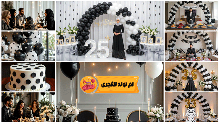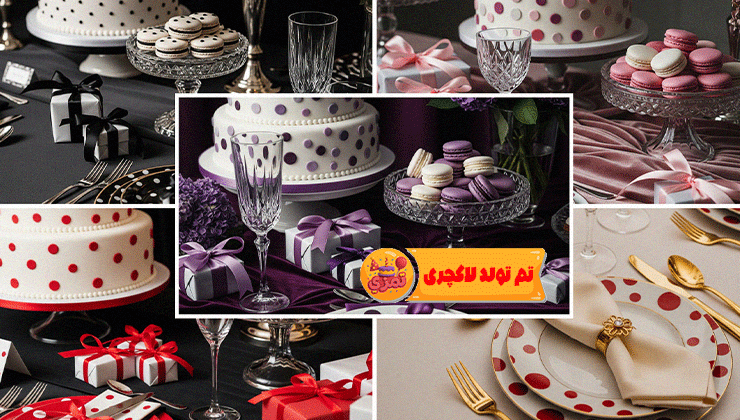 جذابیتی بیزمان و مدرن با تم تولد لاکچری خالدار مشکی از فروشگاه تمزی. این تم تولد خاص با ترکیب رنگ مشکی مات یا براق و طرح خالهای سفید، طلایی یا نقرهای، برای تم تولد لاکچری مردانه یا جشنهای رسمی و شیک بسیار مناسب است. این تم نشاندهنده سلیقهای جسور و در عین حال باوقار است و با وسایل تولد لاکچری از تمزی، به کمال میرسد.